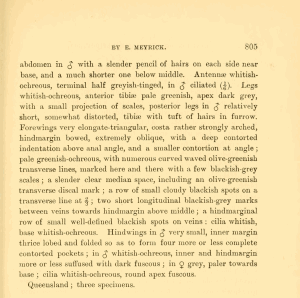 • Original description: Meyrick, E. (1891): Revision of Australian Lepidoptera. IV. — The Proceedings of the Linnean Society of New South Wales. Second series 5 (4): 791-879. Sydney (F. Cunninghame & Co.).