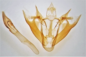 • Rezbanyai, L. (1980): Die Genitalien von Scotopteryx bipunctaria und S. octodurensis, sowie allerlei Wissenswertes über die letztgenannte Art (Lepidoptera: Geometridae). — Entomologische Zeitschrift 90 (4): 33-46. Ex libris Jürgen Rodeland.