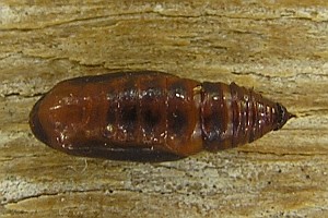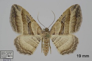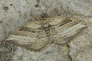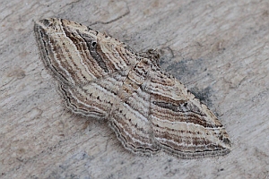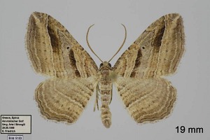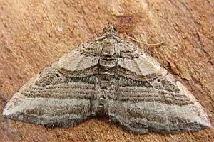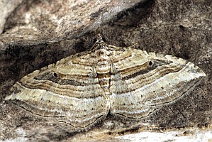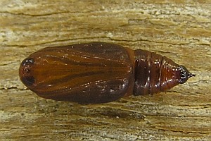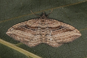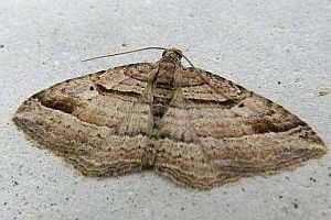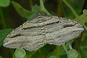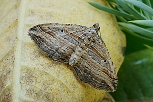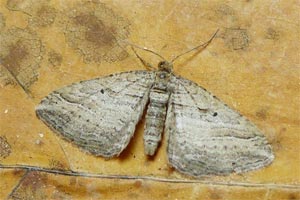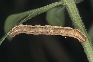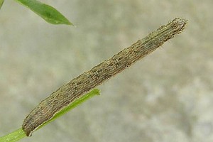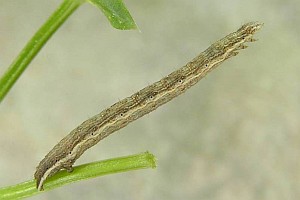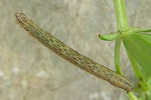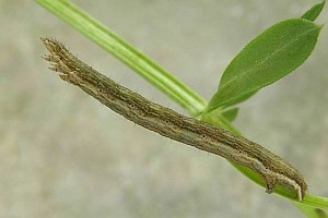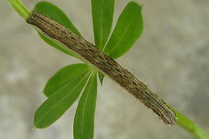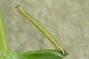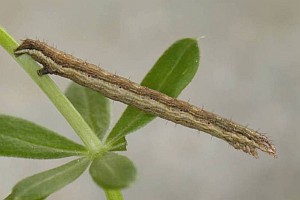 Die Raupen von C. polygrammata variieren im letzten Stadium nur wenig, während es bei der als Falter ähnlichen Orthonama vittata sowohl bei halbwüchsigen, als auch bei erwachsenen Raupen grüne und braune Farbvarianten gibt. (Egbert Friedrich)