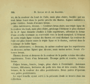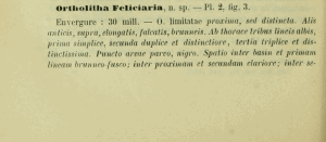 Der Aufsatz besteht aus 2 Teilen mit Überschrift "I" (S. 355-366) bzw. "II" (S. 366-370); wie aus den Enden der jeweiligen Teile hervorgeht, ist für den ersten Teil D. Lucas verantwortlich, für den zweiten Teil J. de Joannis. Die Beschreibung von Ortholitha feliciaria erfolgt S. 362-364, also durch D. Lucas - dies würde auch schon dadurch deutlich, dass der Autor die Art seinem Vater Félix Lucas widmet.