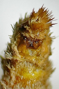 Achtung: Die Fühler sind nicht symmetrisch. Man kann die Zähnung bei Thera britannica also nur im Profil (= von der Seite) sehen, nicht von oben oder von unten! Für unerfahrene Beobachter und Fotografen ist es wichtig, daß sie sich die Fühler von allen Seiten ansehen bzw. fotografieren. Eine Aufsicht oder ein Foto nur von der beschuppten Seite des Fühlers (= oben) oder von unten zeigt die entscheidenden Merkmale nicht!