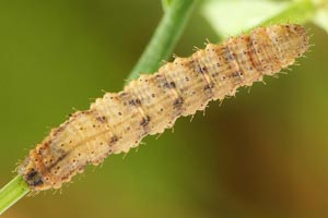 1-2: vorletztes Stadium, Deutschland, Thüringen, Maua bei Jena, Wiese am Waldrand, an Labkraut (Galium spec.), leg. 20. August 2008 (Studiofotos am 29. August und 23. September 2008: Heidrun Melzer), cult. & det. Heidrun Melzer