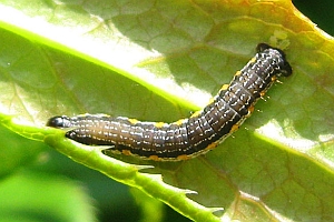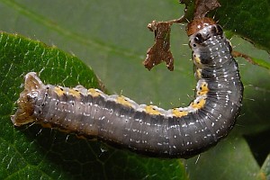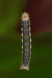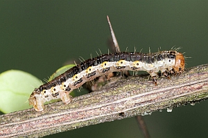 1: Jungraupe, Schweiz, Graubünden, Haldenstein, Ruine Lichtenstein, 770 m, ♀ am Licht am 4. Mai 2012, Eiablage 5. Mai 2012, Schlupf der Raupen 10. Mai 2012, Zucht an Berberis thunbergii (leg., cult., det. & Foto am 19. Mai 2012: Heiner Ziegler)Forum