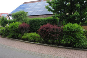 2: Larvalhabitat: Deutschland, Niedersachsen, Rodenberg, Siedlungsgebiet, 70 m, 13. Juni 2015, Raupenfund tags an Berberitze (Berberis thunbergii "Atropurpurea") (Foto: Tina Schulz)Forum