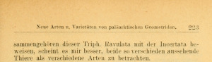 - Erstbeschreibung: Staudinger, O. (1892): Neue Arten und Varietäten von paläarktischen Geometriden aus meiner Sammlung. — Deutsche entomologische Zeitschrift Iris 5 (1): 141-260, pl. II.