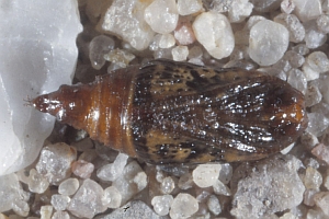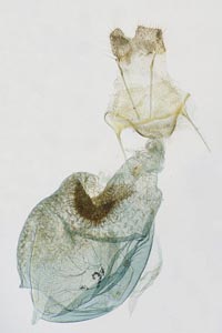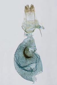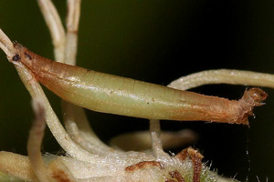 Bei der Eupithecia tripunctaria-Raupe läuft das Dreieckselement am Segmenteinschnitt sich verjüngend auf die Spitze des nächsten zu (3). Die Seitenflächen des Dreiecks sind m.o.w. konkav (4).