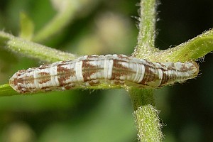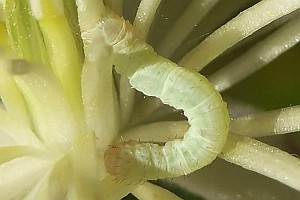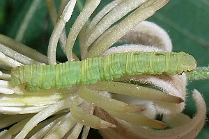Die polyphage Raupe ernährt sich von den Blüten verschiedener Pflanzen.