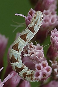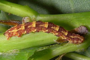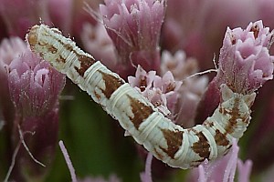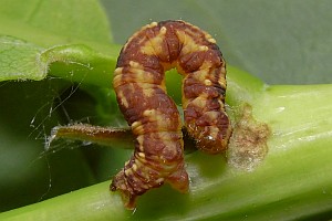 So schwer sind die Raupen von Chloroclystis v-ata und Eupithecia tripunctaria nicht zu unterscheiden. Das gilt auch für schwach gezeichnete Tiere.