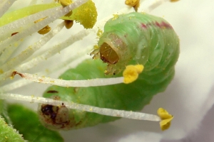 1: Deutschland, Sachsen, Dresden-Loschwitz, Felder am Rodelweg, Raupe an abgeschnittenen Apfelzweigen fressend, die in einer kleinen Baumgruppe auf dem Boden lagen, Fund der Zweige am 30. April 2013, 17. Mai 2013 (det. & fot.: Franziska Bauer)Forum