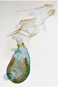 1: Genitalpräparat des unter Lebendfalter 1 abgebildeten ♀, Daten siehe oben (Präparation & Mikro-Foto: Peter Buchner)