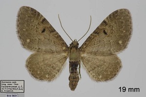 1: ♂, Deutschland, Thüringen, Jena, Pennickental, Fürstenbrunnen, Raupen leg. 21. Juli 2006, e.l. 25. August 2006 (Studiofoto: Egbert Friedrich), cult. & det. Egbert Friedrich