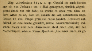 - Erstbeschreibung: Staudinger, O. (1878-1879): Lepidopteren-Fauna Kleinasien's. — Horae Societatis entomologicae Rossicae 14: 176-482. St. Pétersbourg (V. Besobrasoff & Comp.).