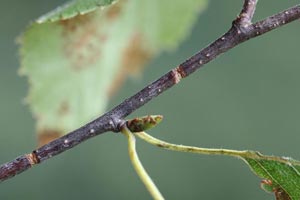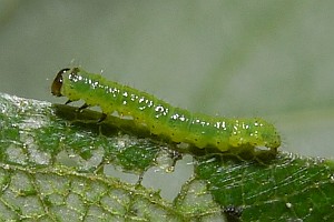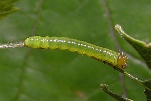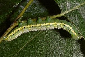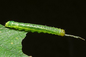 Erwachsene Raupen benagen den Ast, auf dem sie sitzen, ringförmig und unterbrechen so das Leitungsgewebe. Danach ziehen sie sich auf das vordere Zweigende zurück und verpuppen sich nach ein paar Tagen zwischen zwei zusammen gesponnenen Blättern (Ebert 1994b).