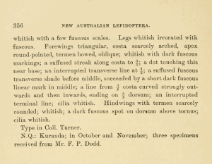 - Original description: Turner, A. J. (1909): New Australian Lepidoptera belonging to the Family Noctuidæ. — The Proceedings of the Linnean Society of New South Wales 34 (2): 341-356. Sydney (F. Cunninghame & Co.).