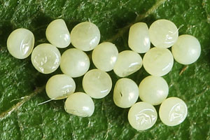 Sexualdimorphismus der Falter: Die ♂♂ haben weiße Beine und die ♀♀ schwarze.