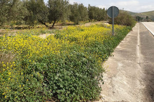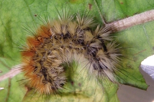 1: Spanien, Provinz Córdoba, Baena, 400 m, 14. März 2024, an Malva spec. (Foto: Dierk Baumgarten). Am Straßenrand und den angrenzenden Olivenbaumplantagen befanden sich kilometerweit Raupen in großer Anzahl.