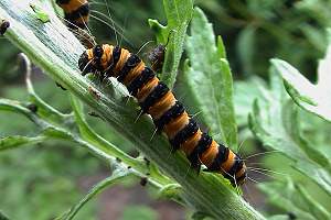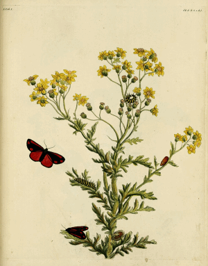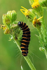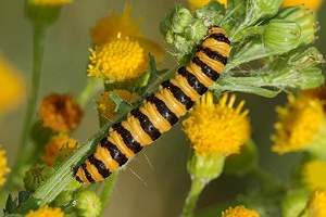 „Senecio jacobaea, Jakobskraut, Nahrung der Raupe.“