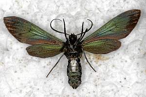 Achtung: Die Bestimmung dieser Diagnosefalter und der zugehörigen Präimaginalstadien als Antichloris viridis ist vorerst keinesfalls völlig zweifelsfrei, da bisher kein Spezialist amerikanischer Ctenuchiini über diese Tiere geschaut hat. Über die Rückmeldung eines Kenners würden wir uns daher sehr freuen.