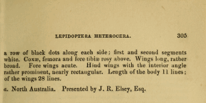 - Original description: Walker, F. [1865] (“1864”): List of the Specimens of Lepidopterous Insects in the Collection of the British Museum 31: 1-321. London.