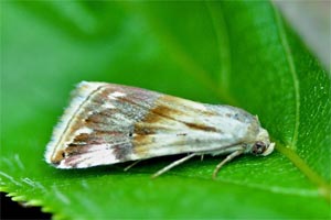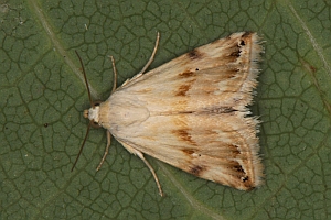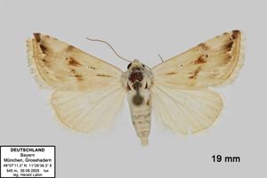 - Eublemma ostrinum [nach Artikel 32.1. des International Code for Zoological Nomenclature korrekte Schreibweise mit Übereinstimmung des grammatikalischen Geschlechts von Gattungs-Substantiv und Art-Adjektiv oder -Partizip (Gender Agreement des ICZN)]