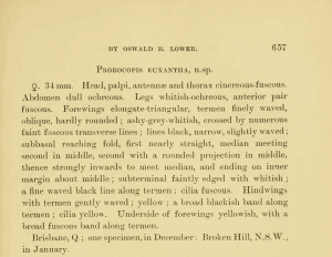 - Original description: Lower, O. B. (1902): Descriptions of new Australian Lepidoptera. — The Proceedings of the Linnean Society of New South Wales 26 (4): 639-671. Sydney (F. Cunninghame & Co.).
