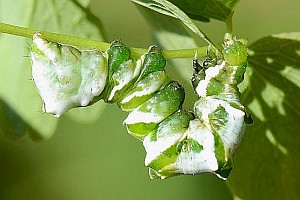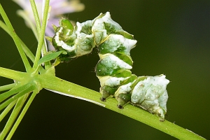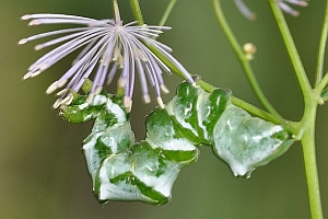9: L1, Deutschland, Baden-Württemberg, Schwäbische Alb, Großraum Leibertingen, ca. 650 m, Raupen an Thalictrum aquilegiifolium, 13. August 2016 (Foto durch Drehen des Blattes manipuliert: Jörg Döring)Forum