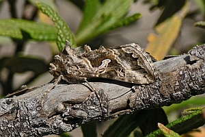 Auf La Gomera (Kanarische Inseln) wurde die Raupe an Röhrentabak (Nicotiana glauca) gefunden. Solanaceae scheinen für die Art eine besondere Rolle zu spielen, es gibt aber auch Meldungen zu Arten aus ganz anderen Familien. Die Raupe scheint also insgesamt recht polyphag zu sein.