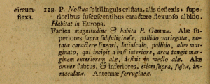 „accentus circumflexus Betonungszeichen; wegen des einem solchen Zeichen ähnlichen goldenen Fleckens der Vorderflügel.“