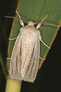 3: Deutschland, Schleswig-Holstein, Habernisser Moor bei Flensburg, leg. Raupe an Schilfblatt 16. Juli 2005, verpuppt 2005, 14. April 2006 (Foto: Mario Finkel), cult. & det. Mario Finkel