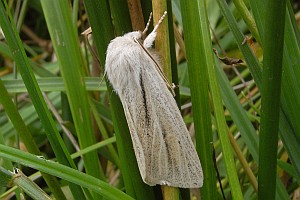 3: Häutungsruhe, Deutschland, Schleswig-Holstein, Habernisser Moor bei Flensburg, Raupe an Schilfblatt, 16. Juli 2005 (Foto: Mario Finkel), leg. & det. Mario Finkel