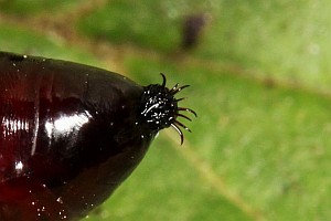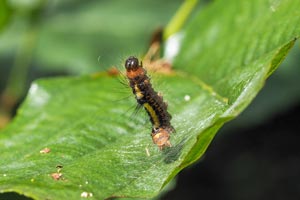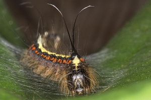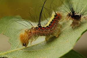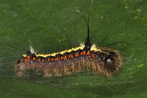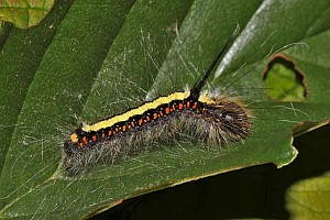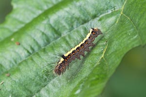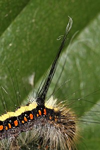 Auf dem ersten Abdominalsegment trägt die ausgewachsene Raupe von Acronicta psi einen langen Zapfen; jene von Acronicta cuspis nur einen langen "Pinsel" auf einem sehr kurzen Zapfen.