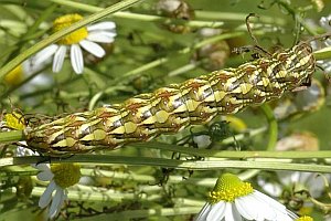 „Chamomilla Kamille, Nahrungspflanze der Raupe.“