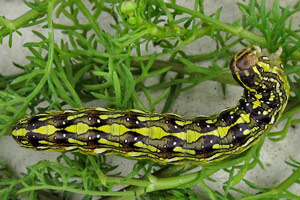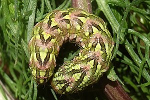 1-2: zwei verschiedene Jungraupen, Österreich, Steiermark, Tillmitsch, auf geruchloser Kamille, (Tripleurospermum maritimum), 11. Juni 2006 (Fotos: Leo Kuzmits), det. Leo KuzmitsForum