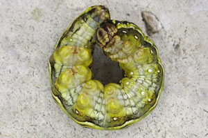 9: verpuppungsbereit, Deutschland, Hamburg-Moorburg, Raupenfund am 21. Juni 2009 (leg., cult., det. & Foto am 5. Juli 2009: Renate Ridley)Forum