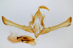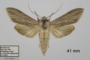 3-5: ♂, Deutschland, Sachsen, nordwestlich von Leipzig, Luppenaue, Feldrand, Raupe leg. 6. Juni 2007, e.l. 31. März 2008 (Studiofotos: Heidrun Melzer), leg., cult. & det. Heidrun Melzer