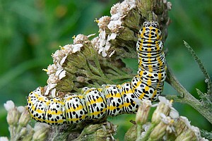 1-4: Frankreich, Drôme, Crest, Autichamp, leg. 5. September 2006 Raupe an Artemisia vulgaris (Studiofotos am 28. September 2006: Allan Liosi), conf. nach Raupenfotos Markus Knust & Christian SiegelForum