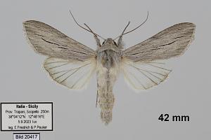 12: Rumänien, Tulcea, steppenartiges Offenland östlich Babadag, 29 m, 44.857292, 28.869081, Raupe an Artemisia sp., leg. 17. August 2019, e.l. 25. April 2020 (leg., cult., det. & fot. Friedmar Graf)Forum