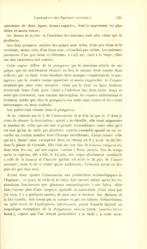 - Erstbeschreibung: De Graslin, A. (1863): Notice sur deux explorations entomologiques faites cans les Pyrénées orientales en 1847 et en 1857 accompagnée de la description de quelques espèces inédites de Lépidoptères de la France et de l'Espagne. — Annales de la Société entomologique de France, Quatrième série 3: 297-372, pl. 8. Paris.