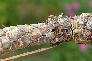 1: Kokon, Spanien, Kanarische Inseln, La Palma, Umgebung El Paso, 980 m, ♀ am 3. März 2012 am Licht (cult. ex ovo, det. & fot. am 7. Mai 2012: Stefan Ratering)Forum