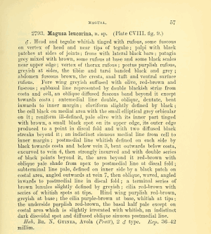• Original description: Hampson, G. F. (1908): Catalogue of the Lepidoptera Phalænæ in the British Museum 7: i-xv, 1-709, pl. CVIII-CXXII. London.
