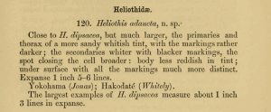 - Erstbeschreibung: Butler, A. G. (1878): Descriptions of new Species of Heterocera from Japan. Part II. Noctuites. — The Annals and Magazine of Natural History, Including Zoology, Botany, and Geology. Fifth Series 1: (1) 77-85, (2) 161-169, (3) 192-204, (4) 287-295. London (Taylor and Francis).