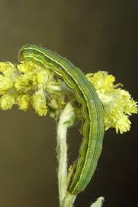 Heliothis viriplaca unterscheidet sich von Heliothis maritima [gemeint ist hier und im weiteren Text jeweils das Artenpaar Heliothis maritima / Heliothis adaucta (Anmerkung Erwin Rennwald)] vor allem durch den völlig anderen Verlauf der Zeichnung auf den Vorderflügeln. Die Mittelbinde z.B. läuft fast gerade auf den Hinterrand zu (b) während sie bei Heliothis maritima sehr schräg in Richtung Flügelbasis verläuft (a). Die äußere Begrenzung des Mittelfeldes bei den Vorder- und Hinterflügelunterseiten ist bei Heliothis maritima schwärzer und kontrastreicher als bei Heliothis viriplaca.
