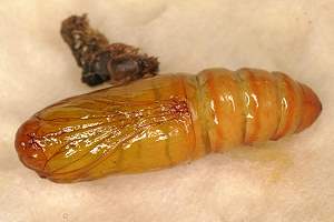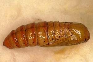 1-3: Daten s. Raupenbilder 1-3, Verpuppung am 28. Dezember 2007 (Studioaufnahmen: Ingrid Altmann), cult. Ingrid Altmann