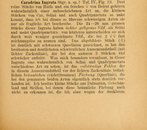 - Erstbeschreibung: Kalchberg, A. Freiherr von (1897): Ueber die Lepidopteren-Fauna von Haifa in Syrien. — Deutsche Entomologische Zeitschrift Iris 10 (1): 161-190, pl. IV.