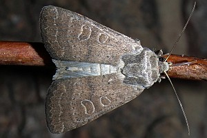 Vorderflügel braun mit graubrauner bis schwach dunkelbrauner Tendenz, in der Regel ohne gelblichbraunen Einschlag. Makeln seltener dunkler als die Grundfarbe. Hinterflügel beim Männchen weißlich mit bräunlichem Außenrand und Adern, beim Weibchen bräunlich mit hellerer Basis. [Axel Steiner] (vgl. H. octogenaria)