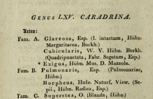 - Nomen novum: Ochsenheimer, F. (1816): Die Schmetterlinge von Europa 4: V-X, [11]-225. Leipzig (Gerhard Fleischer der Jüngere).