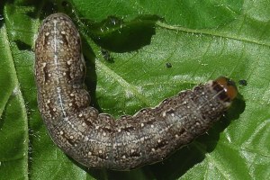 1: parasitierte Raupe, Deutschland, Baden-Württemberg, Bötzingen am Kaiserstuhl, 10. Mai 2008 (Foto: Gabriele Krumm), det. Erwin RennwaldForum