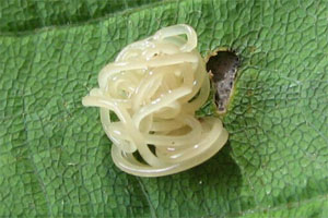2: Nematoden, Mermithidae, Deutschland, Baden-Württemberg, Bötzingen am Kaiserstuhl, Raupe leg. 10. Mai 2008, 17. Mai 2008 (Foto: Gabriele Krumm), det. Nematodenfamilie Olaf StrauchForum