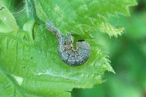 1: Randbereich eines Buchenmischwalds, Deutschland, Baden-Württemberg, Lörrach, 400 m, Raupe an Lindentrieb (Tilia spec.), 21. April 2006 (fot.: Florian Nantscheff)Forum