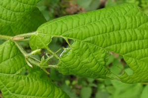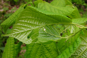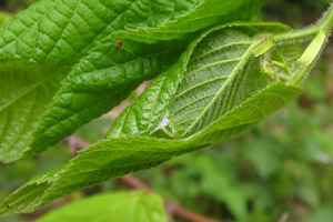 1: kahnförmig zusammengesponnenes Lindenblatt, Deutschland, Sachsen, Strohmberg bei Weißenberg, Laubmischwald, 230 m, 14. Mai 2013 (Freilandfoto: Friedmar Graf)Forum